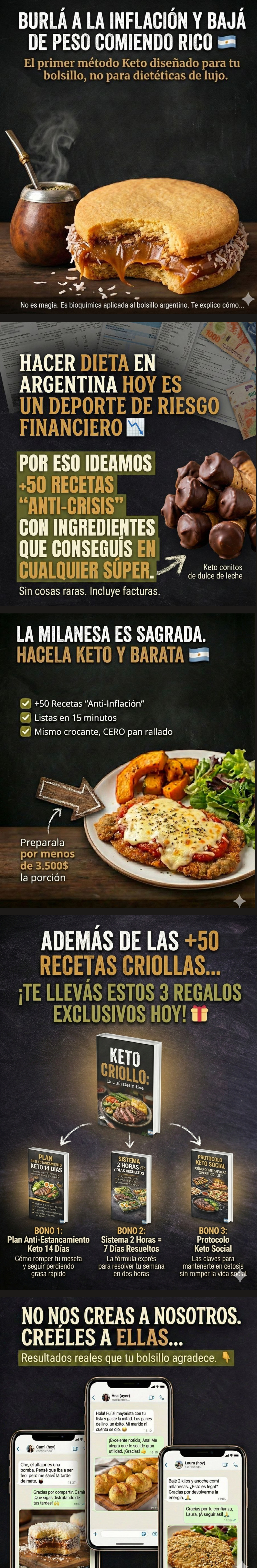 Más de 50 recetas criollas adaptadas a Keto, listas en minutos, con ingredientes que conseguís en cualquier súper. Sin rarezas. Sin productos importados. Sin excusas.